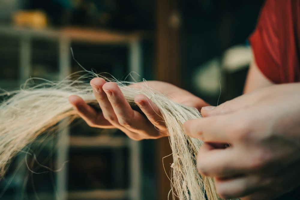 Two curious stools stand in the corner of a showroom. Covered entirely with tightly-wrapped fibres, attached to the top of the stool like a bob wig, the materials used are somewhat familiar… One is white, soft and ephemeral, the other a handsome black, coarse and dark. For the Balinese, these materials will be instantly recognisable: the fine white fibres shredded from parasok (pandan) leaves, used for the hair of the Rangda witch costume; and the spiky ijuk fibres of the aren palm tree, commonly used for shrine roofing, as well as the majestic mane of the giant Barong puppet.