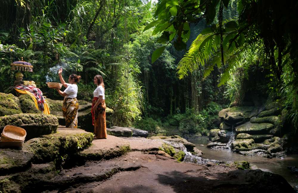 West of Ubud, in the hinterlands of Abiansemal, a twin waterfall has become the go-to destination to experience the unique Balinese cleansing ritual known as melukat. At Taman Beji Griya Waterfall, nature and Balinese spiritual practices come together. Bali is blessed with countless natural wonders: gorgeous waterfalls seemingly down every valley, or forests that scatter