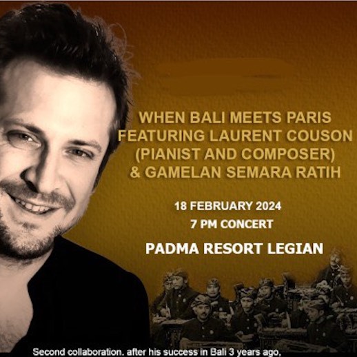 On 18 February 2024, enjoy a unique musical concert featuring the fusion of French composer and pianist, Laurent Couson, and Bali’s traditional gamelan. ‘When Bali Meets Paris’ takes place at the Plumeria Ballroom, Padma Resort Legian. This upcoming performances marks the second French-Bali collaboration of its kind, after a successful concert three years ago. Once