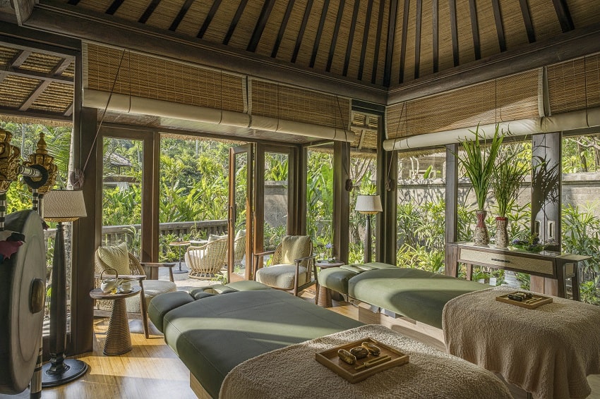 The spa haven features seven private Spa Villas cocooned beneath the jungle canopy, named after sacred Balinese elements, including Sejuk (Water), Gending (Sound), and Teja (Fire). Each boasts a hand-chiselled stone bathtub and state-of-the-art Lemi Portofino electric massage beds. Here, tradition and modernity exist in quiet harmony.