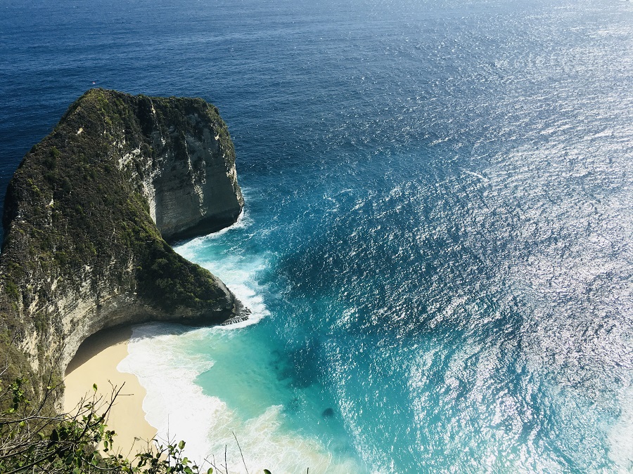 Once you get to the bottom of the stairs, you’ll find a small ‘warung’ (food stall) where you can purchase drinks and snacks. From there, you still have to rappel down to a rocky boulder with a rope to finally step onto the beach. This beach is the perfect private haven, a true gem of Nusa Penida, with soft sand and the calming sound of the waves lapping. This icon of the beach is the diamond-shaped rock formation in the shallows. Swimming on this beach is not really recommended as the waves are big and the current is very strong. Take this time to sit back against the gigantic wall of rock and soak in the unparalleled view, but always stay alert because the water gets really strong at times and can even reach as far back as the rock walls.