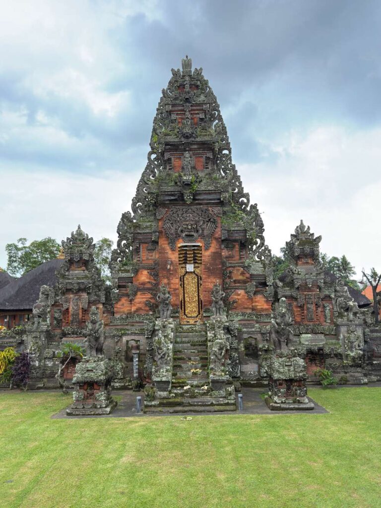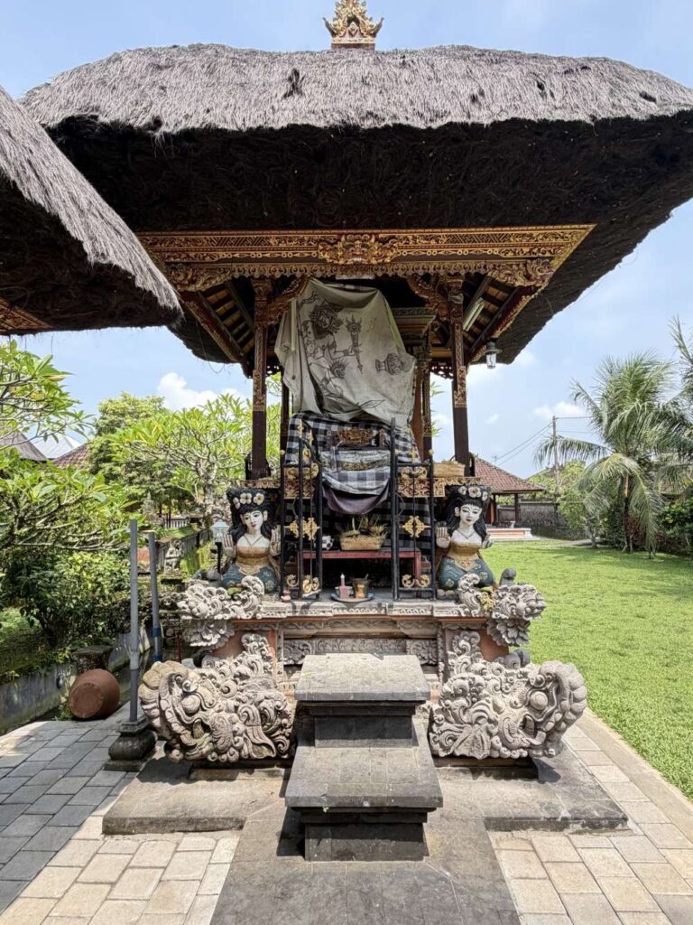 The term Kahyangan Tiga literally means “three sacred places”. This is comprised of a Pura Desa (Village Temple), dedicated to the worship of Dewa Brahma in His function as the creator of the universe; a Pura Puseh (Central Temple), dedicated to Dewa Wisnu in His function as the preserver; and Pura Dalem (‘Death Temple’), the dedicated to Dewa Siwa in His function as the dissolver of the universe, often alongside his consort, Goddess Durga.