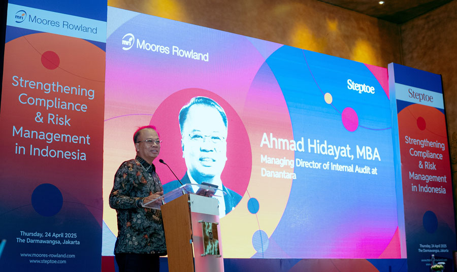 To provide clarity and direction during this volatile time for the global economy, Moores Rowland Indonesia and prominent U.S. law firm Steptoe hosted a governance workshop titled, Strengthening Compliance and Risk Management in Indonesia, at the Dharmawangsa hotel in Jakarta. The workshop’s keynote speaker was Mr. Ahmad Hidayat, Managing Director of Internal Audits at Danantara Indonesia, a sovereign wealth fund, who spoke on behalf of Mr. Rosan Roeslani, Minister of Investment and CEO of Danantara. Also speaking were former Indonesia attorney general, current Moores Rowland Indonesia senior advisor and notable international human rights advocate, Mr. Marzuki Darusman, as well as partners from the Steptoe office in Hong Kong.
