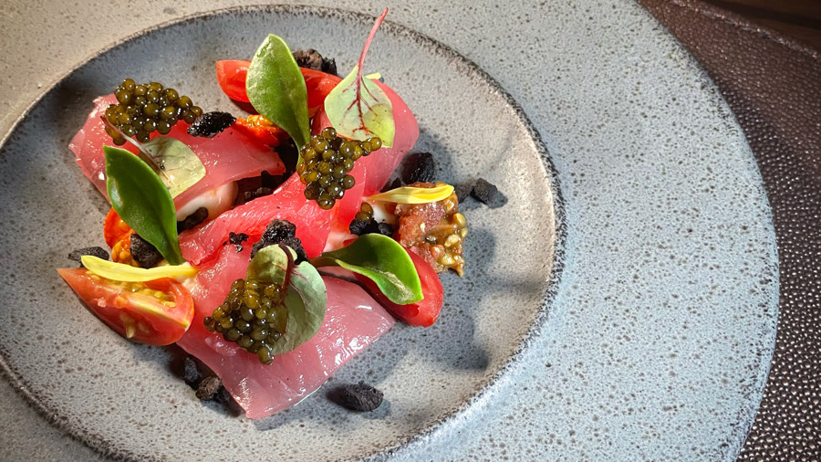 This theme continues: delicately sliced raw tuna, balanced with creamy dollops of burrata and generous servings of Kristal Caviar for an exquisite (and luxurious) note of umami. Then an Italian-Thai fusion, where Phad See Ew meets Tagliolini with flavours driven by Bali’s freshwater crayfish.