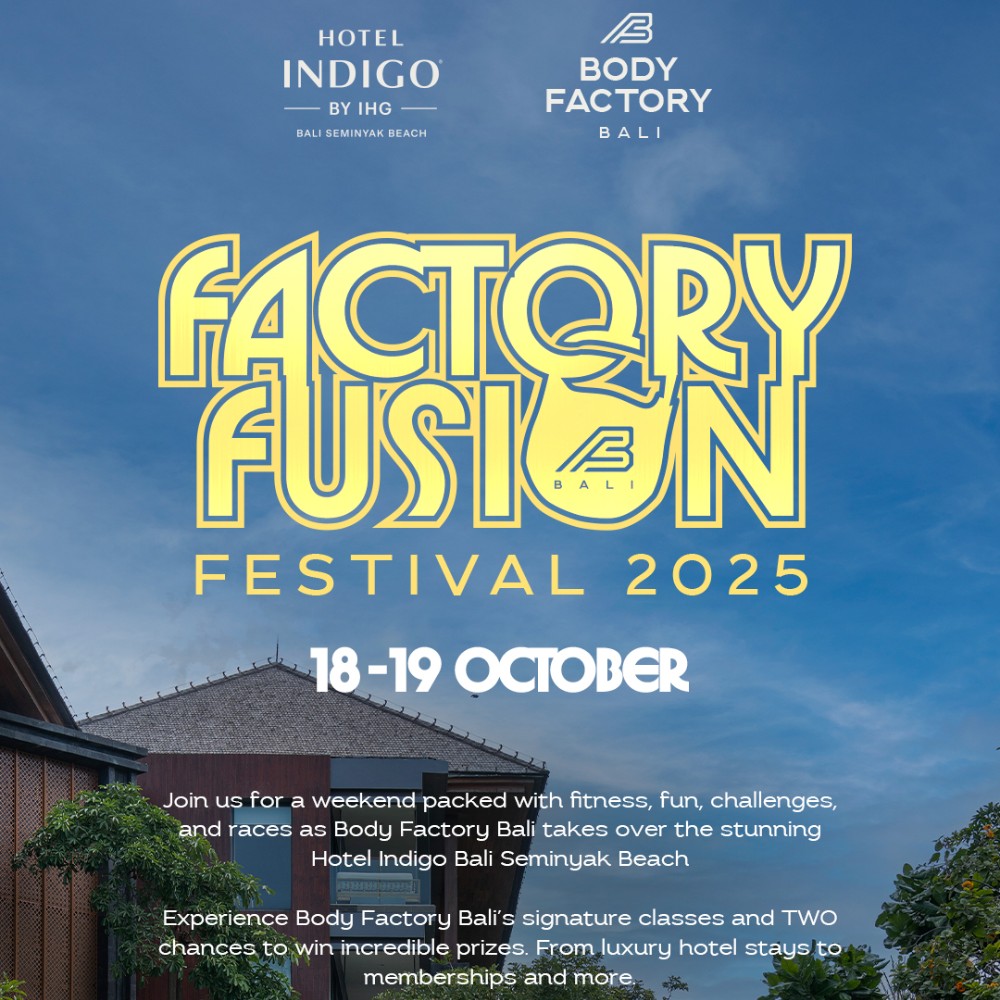 Following two successful years of energising the Seminyak fitness community, the beloved Factory Fusion Festival is set to return for a third consecutive year this 18-19 October 2025. Presented by Hotel Indigo Bali Seminyak Beach, in collaboration with Body Factory Bali, this third edition will offer two days of movement, community spirit, and the opportunity to win exciting prizes.