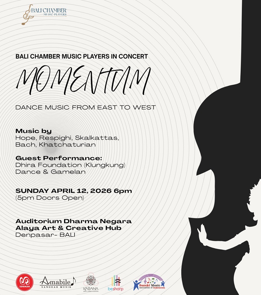 The Bali Chamber Music Players present “Momentum – Dance & Music from East to West,” a concert that brings together the energy of Western classical dance music and the living traditions of Balinese song and dance, in a vibrant artistic dialogue between cultures while placing children and cultural heritage at the heart of the evening.